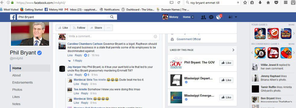 Hearing the rumors, I started watching and digging at the same time. Watching for Governor Bryant to refute the claims and say that his mother was a different Estelle Bryant. Digging to see if I could find any concrete proof other than a much-shared tweet. While I watched and waited for Governor Bryant to make a public statement, I took note and screen shots at some of the messages he was receiving and ignoring on social media. It has been at least three days that people and constituents have been asking online if Bryant indeed in the nephew of Roy Bryant. Governor Bryant is silent on the issue.