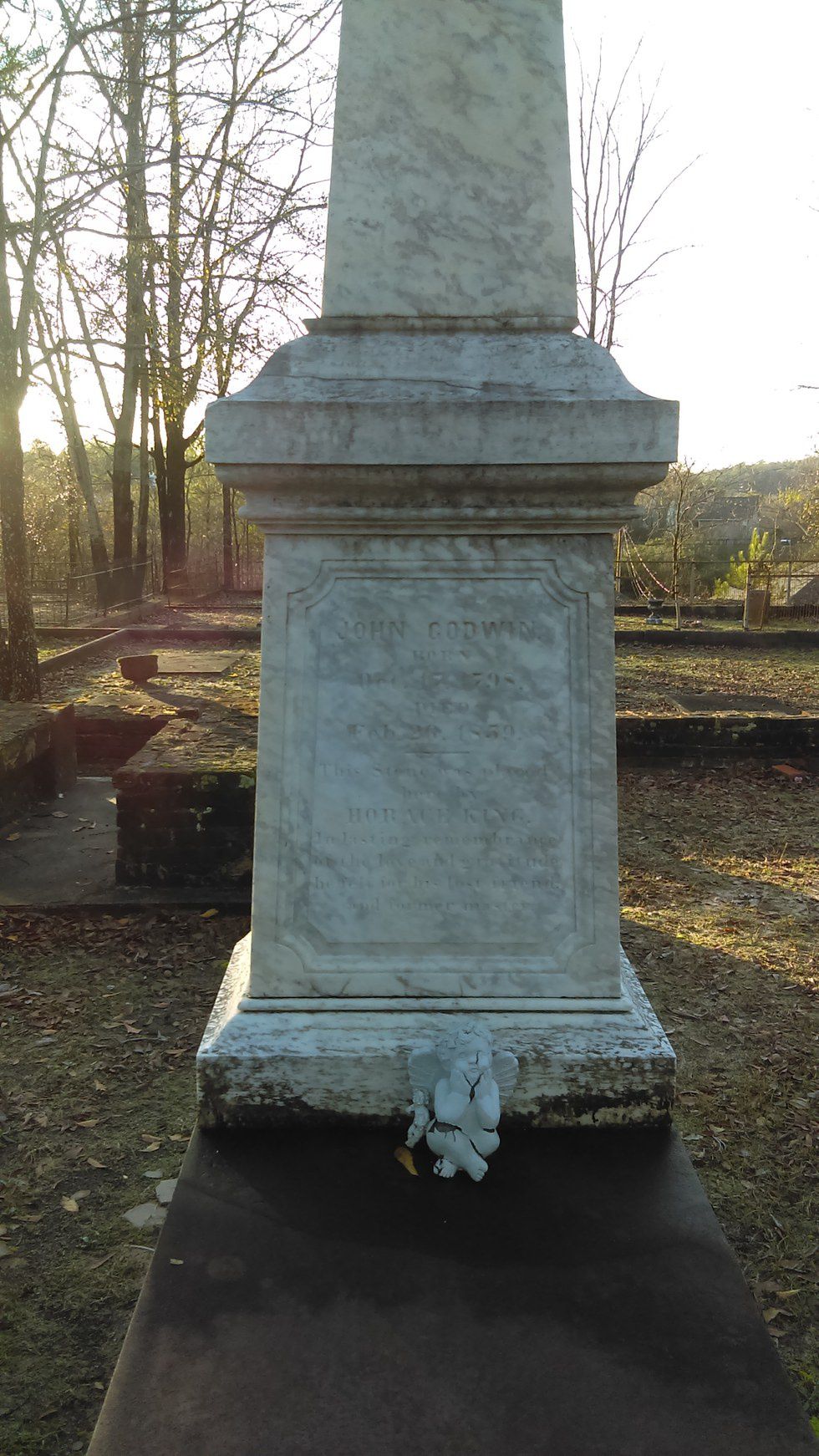 Resting place of John Godwin affixed with the monument Horace King erected in his honor.