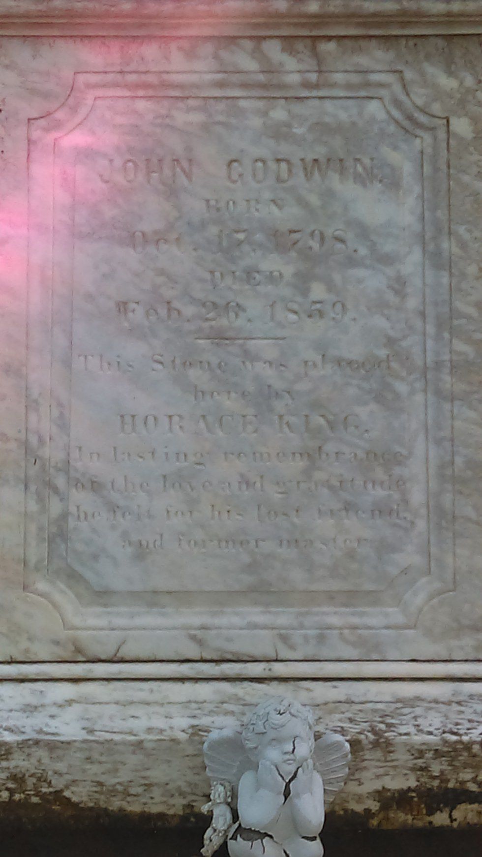 Freed from bondage in 1846, Godwin and King would remain business partners, and friends, for the rest of theirs lives. Described as "a special friendship that transcended the master-slave relationship," by the Georgia African American Historic Preservation Network, it was when Godwin died, in 1859, that King paid for his burial expenses, and erected a monument in honor of him.