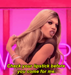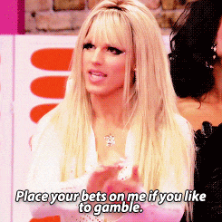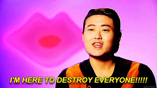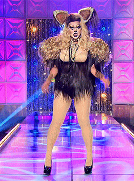 Let's start with the obvious: that make-up is stunning. This is literally art and drag at it's finest. But as the episode went on, I was also super thrilled with her craftsmanship with her outfit design (see "Hair Extravaganza" GIF above) as well as her humor and personality. Humor and looks are a killer combo in this competition, guaranteed to not only make for a fan favorite, but a versatile and fierce competitor.