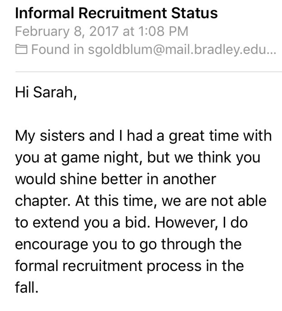 I was so embarrassed to tell my friends that I was declined a bid. And I feared they wouldn't want to be my friends anymore.