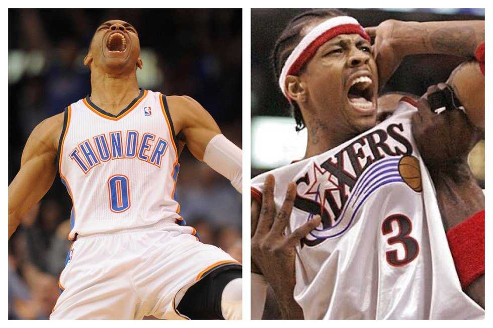 Today players are running to join other stars, rather than winning on their own. Lebron bolts to Miami, KD goes to GS, free agents running to Cleveland for pennies on the dollar to chase a championship. That seems to be the trend, but we already know Westbrook and trends don't mix. From the GQ covers to the Taylor Swift pregame, Russ blazes his own trail in many ways, yet on the court he is as old fashioned as they come. In the days where analytics and efficiency reign supreme, Westbrook throws all of that out the window. He is a force, he's unrelenting, the last play's outcome having no effect on the next. Much like Allen Iverson, the win is all that matters. They both play with more heart than anyone, and that is what makes them a different breed. They aren't cut from the same cloth.