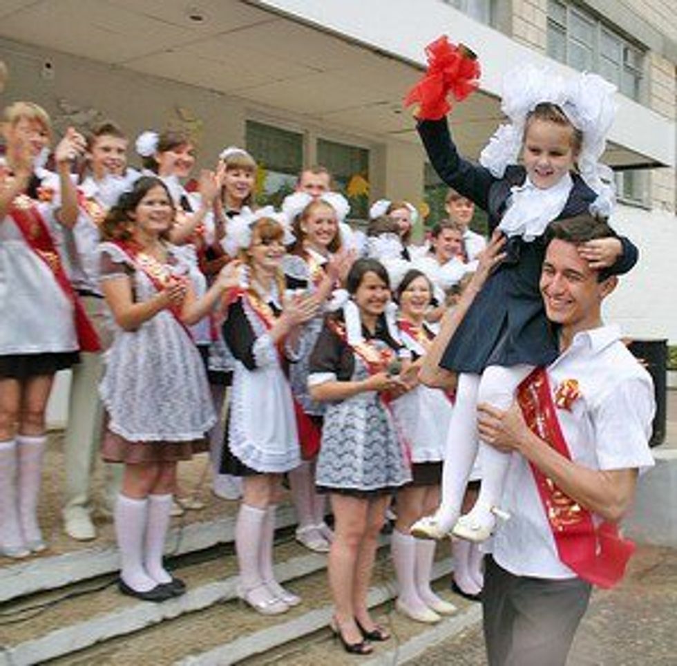 I can say, that "the Last Bell Day" is more important for our graduates then the prom for American students, which Russians also do.