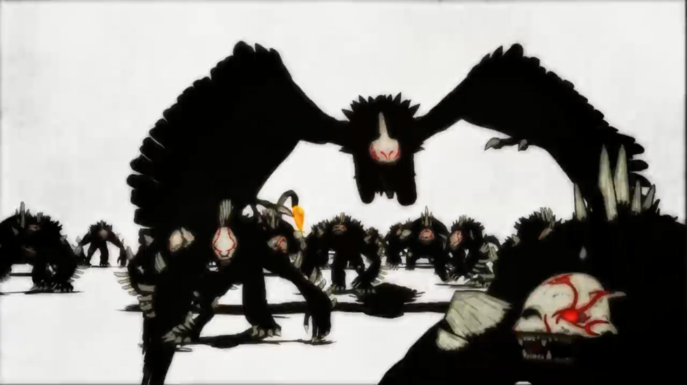 While Monty Oum’s great fighting choreography stood out during the action, more passive scenes lacked the same level of animating refinement. It was weird seeing these characters go from doing backflips and cartwheels while fighting giant monsters to watching them move all stilted and slow like they were being weighed down. On top of that, background characters and even parts of the setting were only given outlines for models, leaving them completely blacked out. This was disconcerting because the main characters just stood around in swarms of shadowy figures, making them stick out way too much.