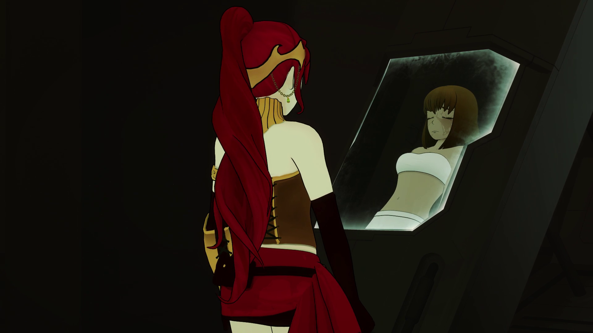 In Atlas, Weiss and Klein have hatched a plot for her escape. They are briefly separated by Whitley, and Weiss stops and eavesdrops on an argument between Jacques and Ironwood. It's revealed that Ironwood will be closing the border in a week to ensure the safety of Atlas's citizens. As he turns to leave, Weiss uses a glyph to lock both men in her father's study and heads to the library, where Klein lets her out using a secret passageway. This moment is powerful, as Weiss is basically disowning every member of her family except Winter.