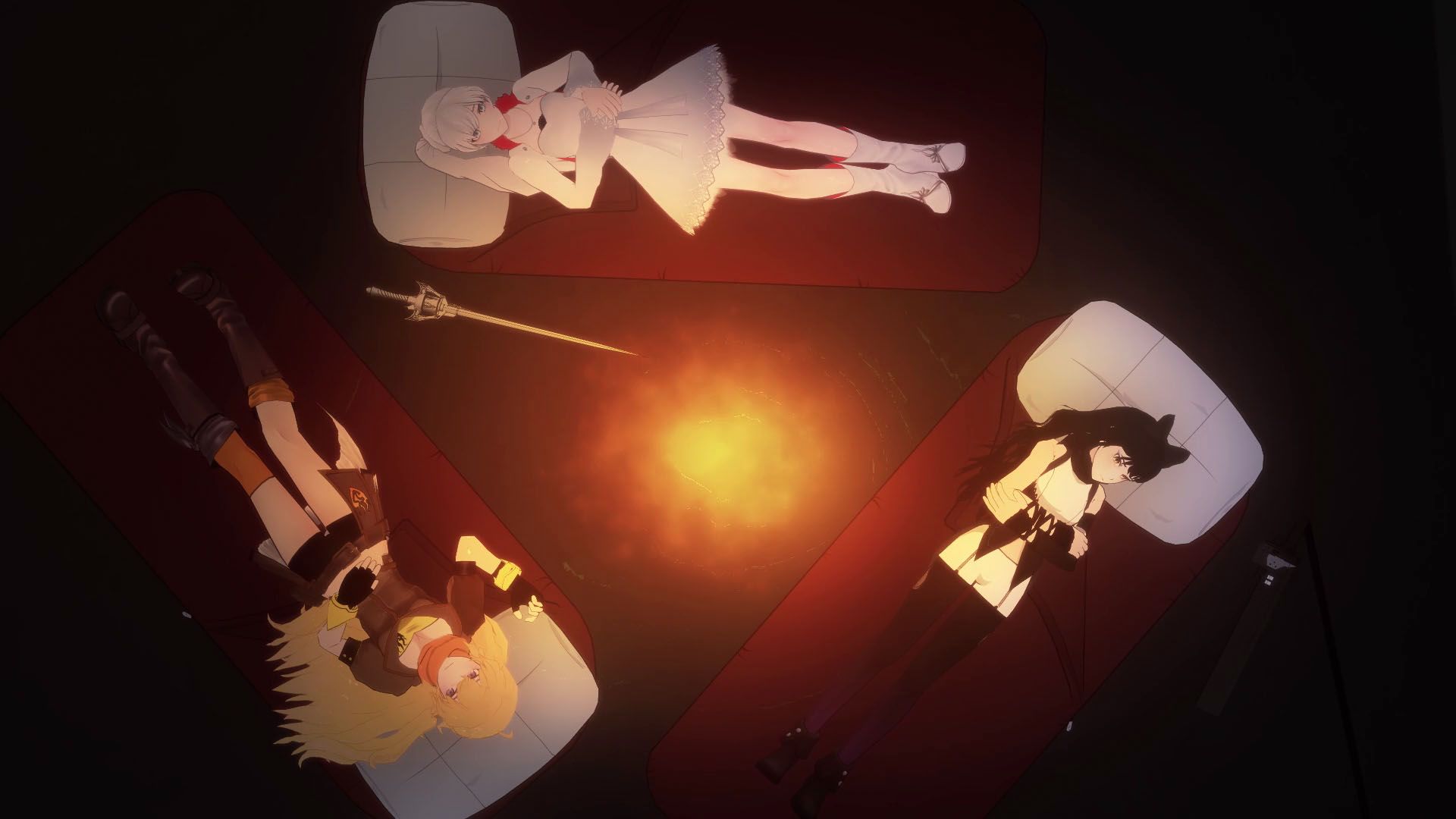 Weiss, Blake, and Yang, having been left uneasy by Oobleck's earlier questions, have a late night talk, during which they expound more on the reasons they became huntresses. This leads to the characters realizing several things about themselves, and each of them is left with a greater sense of responsibility than they had before. As the episode progresses, Ruby inadvertently falls right into the enemy's lair, leading directly to-