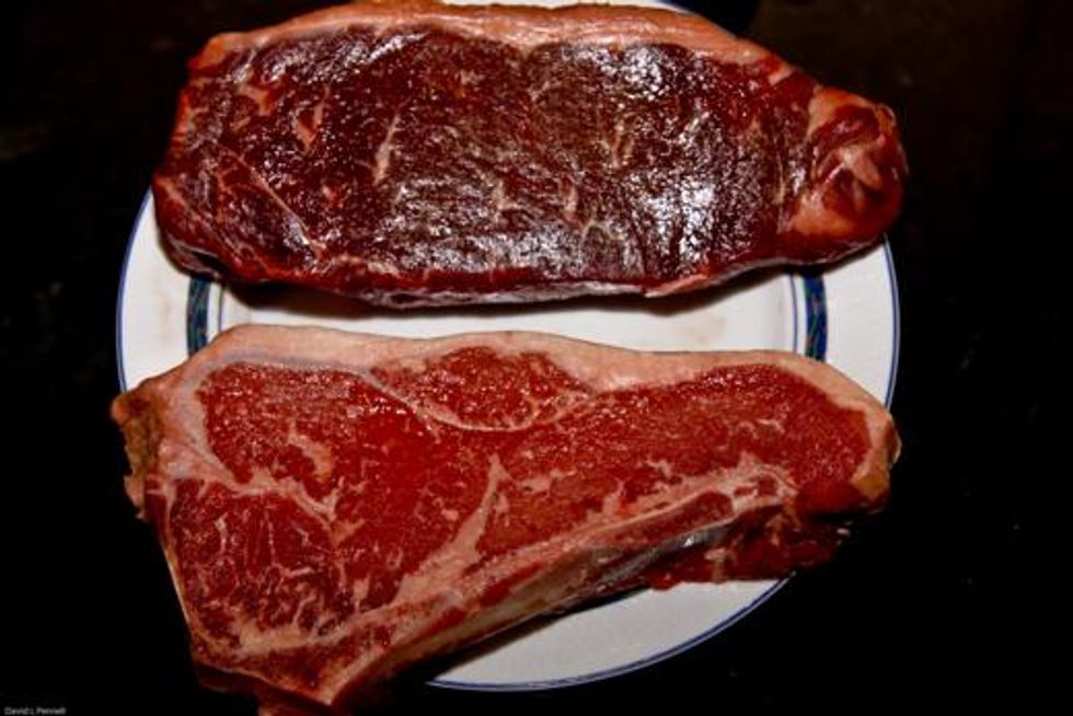 If you're using meat such as beef, pork, or lamb, you also want it to be firm and without odor, and you want the packaging to be clean. Don't pick the ones with stuff on the outside. Beef should be a bright red color, slightly darker if it is aged, and it may have a slight purple tint if it is in a vacuum-sealed container.