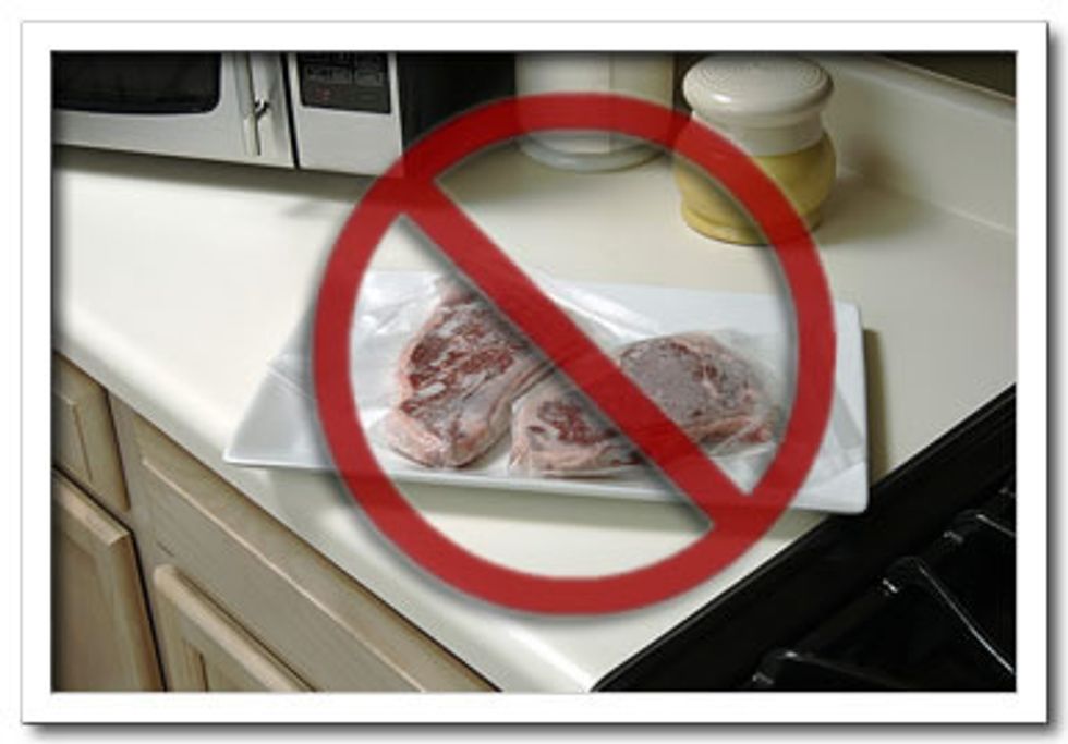 Namely, thawing food. What's the best way? There are really four ways that are safe for thawing food. They do not include letting the meat sit in still water in the sink. They do not include thawing it on the counter. They are: