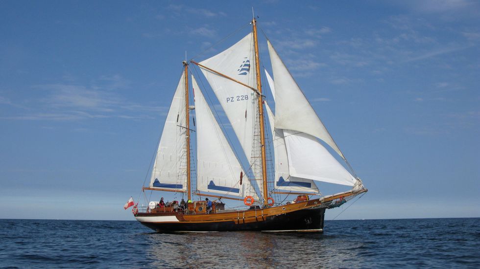 I told myself, two weeks of sailing, far away from the shore, would be perfect in order to forget everything around me. Somehow I found my way to the harbor, hefting my things through the lonely town. The wind was cutting my face as I was walking along the pier. Passing grey tankers and smelly fishing boats I was looking for her. Narrowing my eyes to slits I looked into the distance and there she was. She was old but proud, covered in wood and robed with two masts. Her elegant silhouette contrasted with the heavy clouds above her. I approached and stared reverentially at the shining wheel made of precious oak tree. Although she looked as if life on her deck was anything but a comfortable fairytale, she was a beauty.