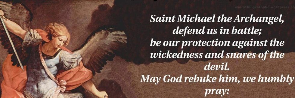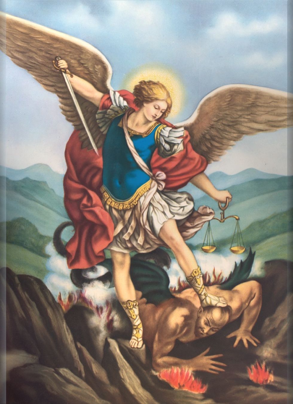 St. Michael the Archangel, illustrious leader of the heavenly army, defend us in the battle against principalities and powers, against the rulers of the world of darkness and the spirit of wickedness in high places.Come to the rescue of mankind, whom God has made in His own image and likeness, and purchased from Satan's tyranny at so great a price. Holy Church venerates you as her patron and guardian. The Lord has entrusted to you the task of leading the souls of the redeemed to heavenly blessedness. Entreat the Lord of peace to cast Satan down under our feet, so as to keep him from further holding man captive and doing harm to the Church. Carry our prayers up to God's throne, that the mercy of the Lord may quickly come and lay hold of the beast, the serpent of old, Satan and his demons, casting him in chains into the abyss, so that he can no longer seduce the nations. Amen.