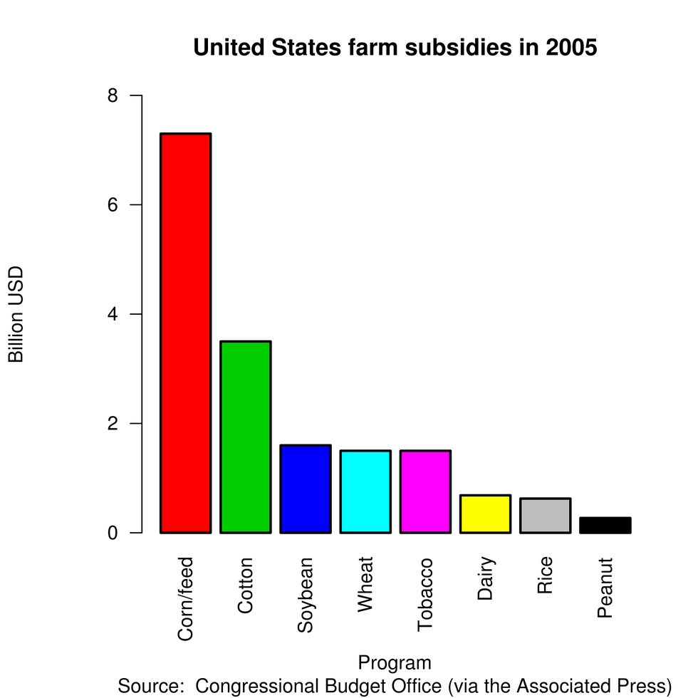Second, the prices of certain ingredients -- especially those found in hamburgers -- have been forced downwards. Subsidies have made crops such as corn more abundant than what the market demands. Producers began experimenting with corn as a sugar alternative in the 1970’s, and America was later introduced to High Fructose Corn Syrup. In addition, the prevalence of cheap corn and wheat has reduced the costs of bread production and feeding cattle, which partially explains the reduction in the price of beef.