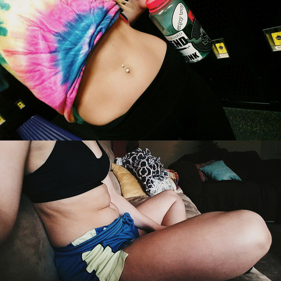 Body image is something so fragile. So let's shatter the expectation that we must stand tall, be flexed, be thin, be anything but the real versions of ourselves. We are not defined by the rolls we have when we lounge in our comfiest clothes on the couch at 4 PM with our cartons of ice cream watching bad reality TV. The same way that we are not defined by the hours we labor at the gym 3-4 times a week. We are all but a balance of the two. Beautiful when sweating on the treadmill and beautiful when sprawled out.