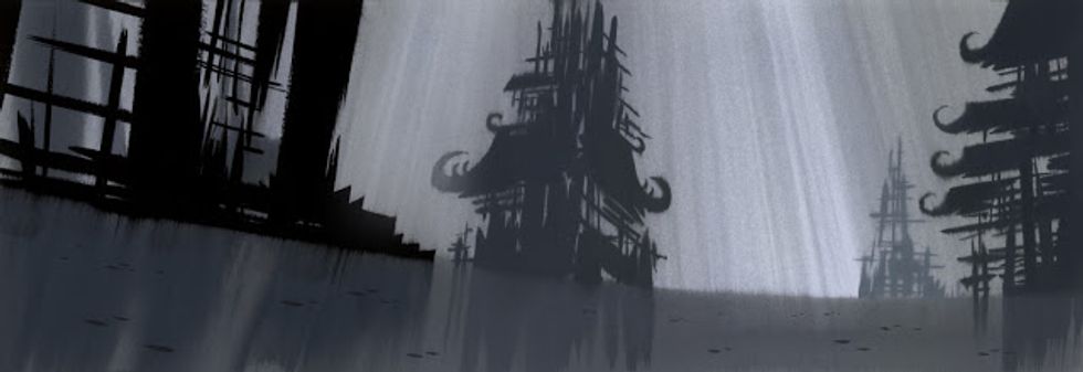 The Cinematography of Samurai Jack is quite amazing and simple. Much of it contains little to no dialogue in its episodes and has scenic landscapes to display its setting with little to no music. When prompted Genndy Tartakovsky said that Samurai Jack's influence draws from samurai films and manga adaptions from movies like 47 Ronin to combat scenes like 300 as featured in Jack and the Spartans.