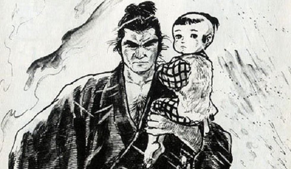 Samurai Jack features a on of references. In the second episode, there is a desolate city that he travels to that feature Townsville from the Powerpuff Girls. In the episode where Jack returns to his homeland, there is a flashback where he encounters a rogue samurai and his child, alluding to Lone Wolf and Cub, a popular manga in the 1970s about a Ronin and his Son. There are other references to the movie and graphic novel 300 in the episode Jack and the Spartans and Alice in Wonderland where a rabbit steals Jack's clothes. There are even references to a video game Space Ace where
