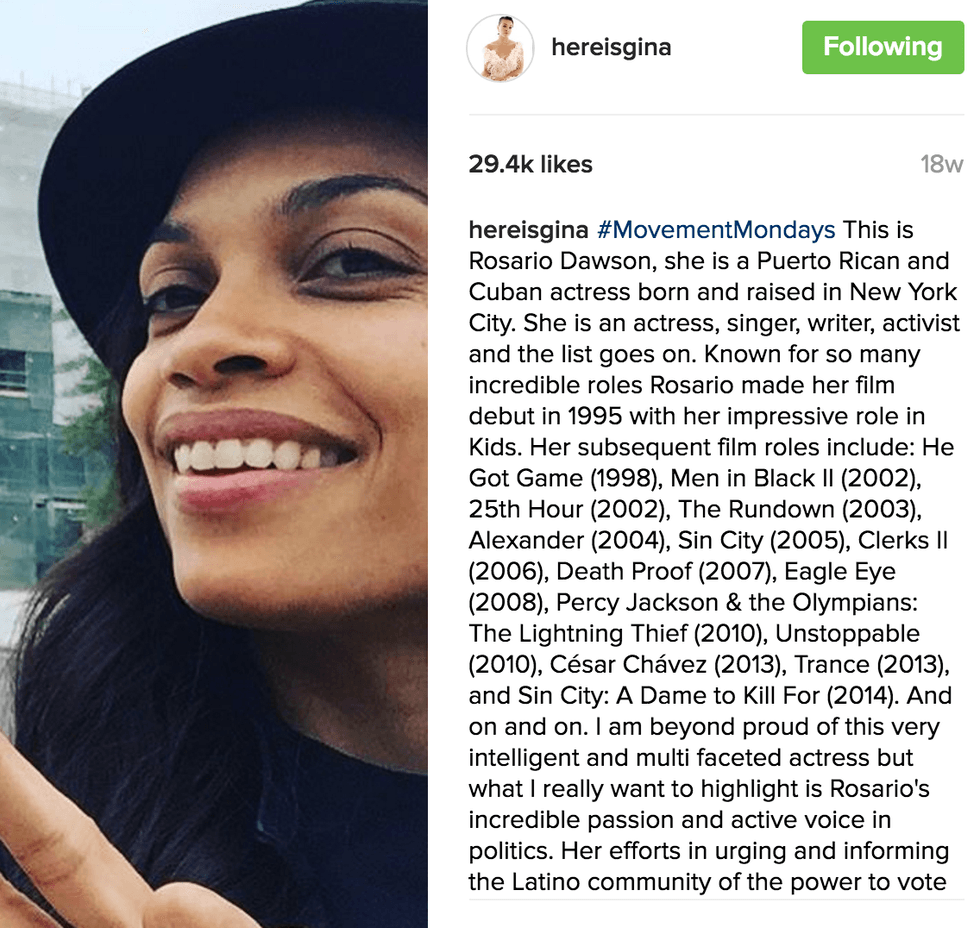 First, I found out that the first U.S. Mexican-American poet was dubbed poet laureate on June 10th (I'm very late to the race, I acknowledge). Then, Gina Rodriguez's movie Deepwater Horizon came out this past weekend, a rare occasion in which a Latina in Hollywood is finally representing a person, not a stereotype. Also, for the past few months, she has done what she's called "Movement Mondays" on her Instagram, in which she posts a different profile of a Latinx actor/actress each week to empower the Latinx community in Hollywood.