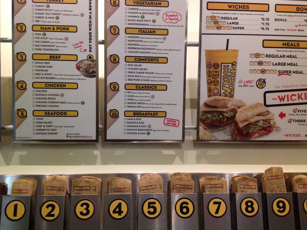 This restaurant is a "build-your-own-sandwich" kind of place. When you walk in the door, you will see numerous different bags to write your order on. I always grab the bag that says "chicken" at the top, and I can put whatever I want on my chicken sandwich. There are so many options to choose from so you are guaranteed to be satisfied. Which Wich has many, many locations in 40 states all over the United States.