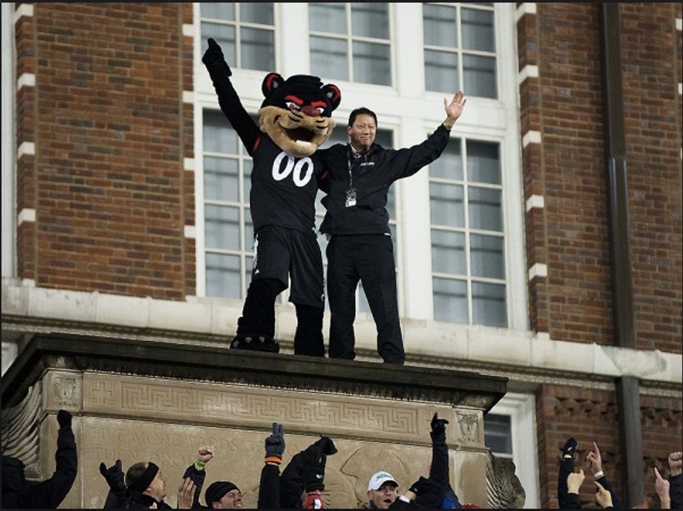 We all know him, Santa Ono, the president with the red and black bow tie, the guy who's handing out lollipops to his students on campus, the guy who's throwing out T-shirts during football games and the guy who is helping lead our favorite cheers. But also the guy who's donating copious amounts of money to those in need, making a difference and making a name for the University of Cincinnati. President Ono is doing everything in his power to make being a bearcat the best experience possible for his students, and for that reason and plenty more, President Santa Ono is the best university president out there.
