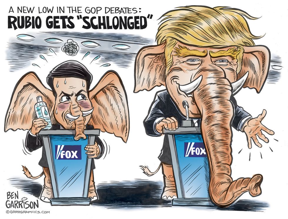 We could look at the circus-like state of the GOP. The debates between the Republican candidates have been little more than mud-slinging and the debasement of the integrity of the political system. There was Marco Rubio -- with his revival on the polls and the stage -- calling out Donald Trump for having small hands and, along with it, another small appendage. There was Trump responding to Rubio and the nation, "There is no issue. I guarantee it." There was Ted Cruz, saying Obamacare "is the biggest job-killer in this country -- millions of Americans have lost their jobs, have been forced into part-time work." And we laugh. We laugh, we point, we sigh, we face palm, we watch it all in high definition.