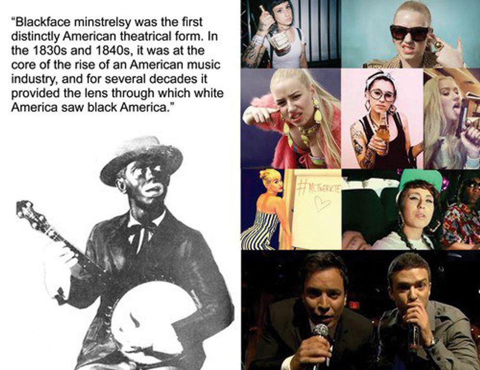 “A white rapper like Iggy Azalea acts out signifiers which the white majority associates with black culture — hyper sexuality, senseless materialism, an obsession with drugs, money and alcohol — as well as adopting clothing, speech and music — as a costume that they can put on and discard at will. It’s a cheap circus act.”