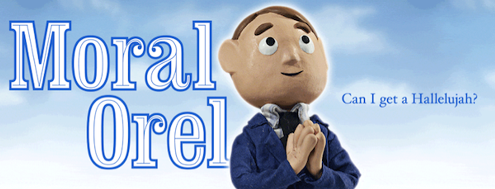 “Moral Orel” prides is an open-faced parody of “Davey and Goliath,” an old clay-animated series (done by the guys who made “Gumby,” no less) about a young boy and his talking dog learn biblical lessons in "Leave It To Beaver" fashion. “Moral Orel” adds satire, not so much of the religious nature of "Davy and Goliath," but the hypocritical nature of American religious fundamentalism. The show centers around a town full of people (poorly) hiding deep secrets while using Christianity as a guise. The pastor, Reverend Putty, who preaches love and charity is a chronic masturbator who lusts after local women. The librarian hates knowledge and expression, censoring everything that might cause people to think. The doctor gives away pain pills to make his patients shut up. They all come together each Sunday to church, putting on a pious face. In the middle of it all is Orel, who can only tell right and wrong from what his abusive, alcoholic father tells him. Having no real sense of morality, Orel gets into trouble by taking the words of his father or pastor to logical extremes with drastic consequences for the town, sometimes relating to modern social ills. One episode has Reverend Putty preaching about charity- which leads to Orel giving charity to a drug dealer who, in return, “gifts” Orel with hardcore drugs. One of my favorite “take that!” moments in the show is when the missing link is discovered and is brainwashed into becoming Rush Limbaugh.