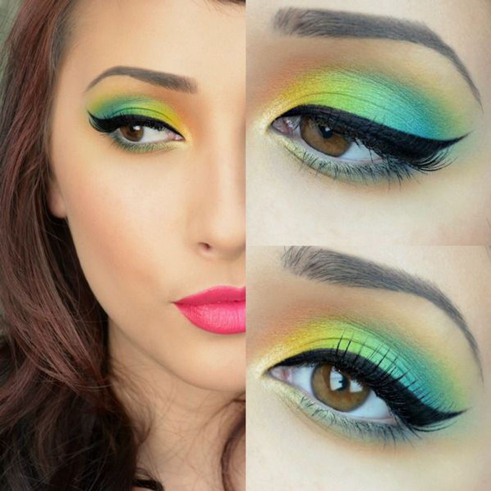 14. This makeup look kind of reminds me of a mermaid. The blue, green, and yellow are blended together so evenly, they look like scales almost. Mermaids are rad.