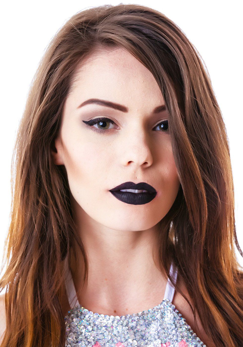 12. Her whole entire look is so glamorous. I'm loving the pop of shimmer around her eyes, and I'm especially loving her dark, vampy lips.