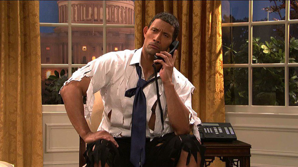 In a 2009 episode hosted by Dwayne “The Rock” Johnson, Armisen’s Obama gets angry during a meeting with a group of senators and transforms into “The Rock Obama.”