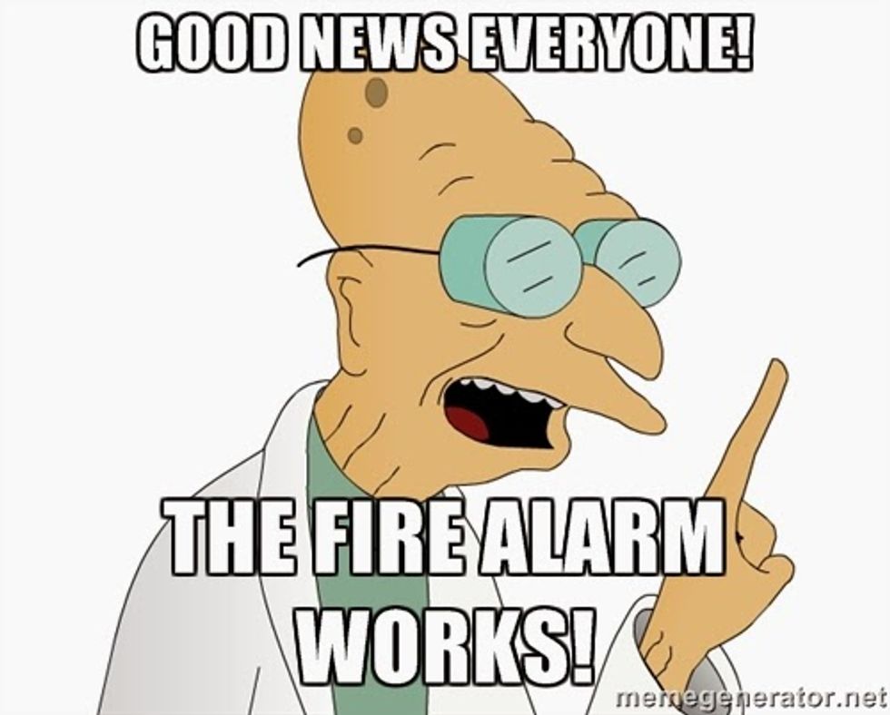 But let's all think of the alternative as well. Let's just say that the alarm does go off, not because there's an actual emergency, but because it's like me and doesn't know what it wants to do in life so it just sits there shrieking and hoping it'll draw up enough attention to itself that someone will pay attention to it.