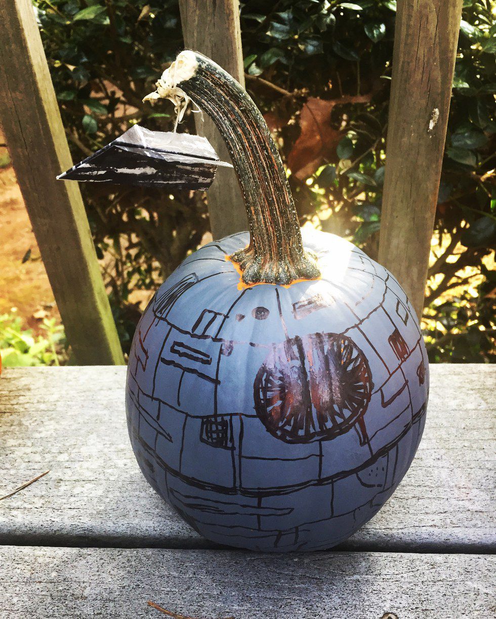 What you need: 1 pumpkin, grey paint, paint brush and black sharpie