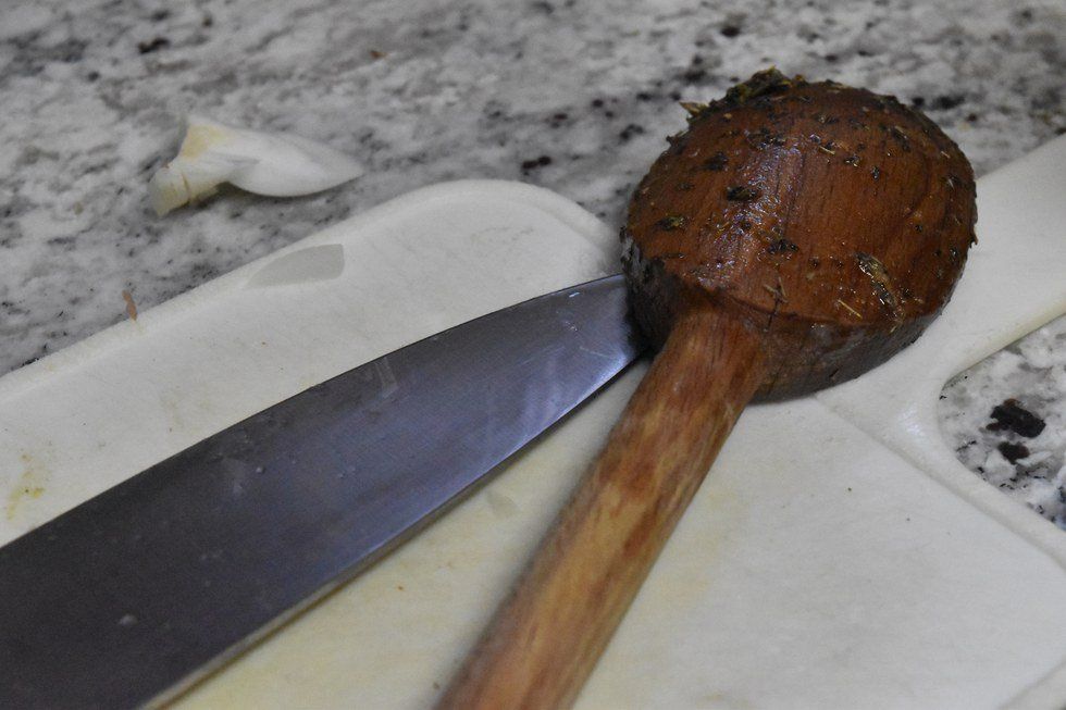 You can pretend to be mourning the death of your garden, but onion is an unavoidable ingredient in a tomato sauce. If you don't want to cry, you can chop the onion into large chunks because their size does not matter in the end.