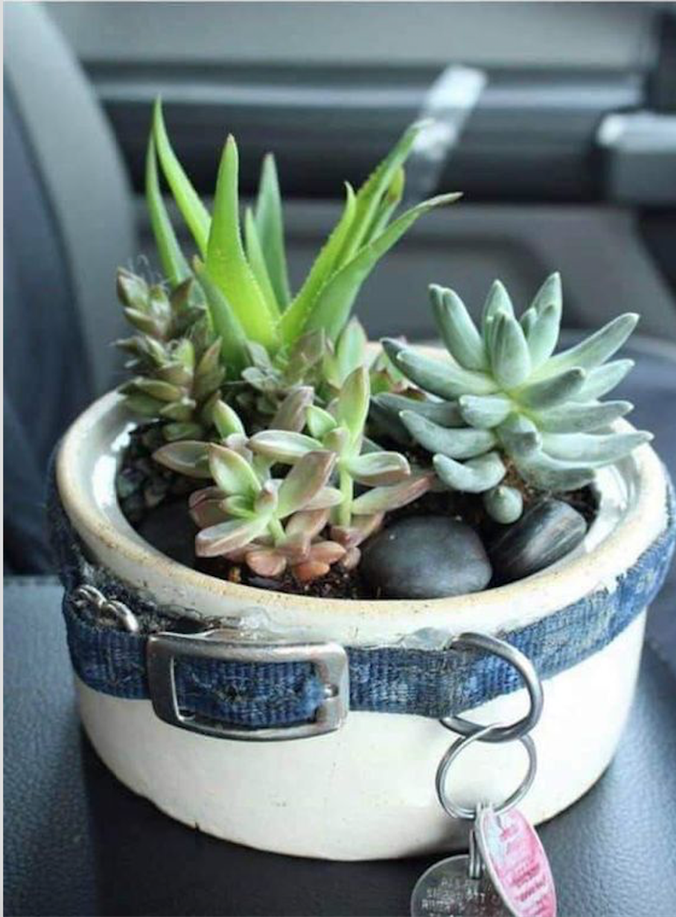 I saw this cute idea on Pinterest. Make a plant pot out of their old water bowl and put their collar around it. This is a great way to memorialize them and whenever you see it, you will remember all the good memories you guys had.