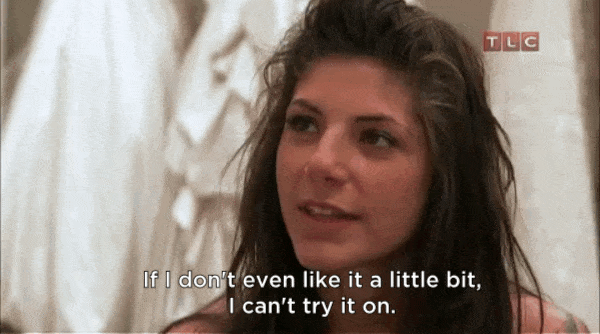 6. When a bride tries on something way out of her budget, "DON'T DO IT! You're going to try it on and love it and then have your heart broken!"
