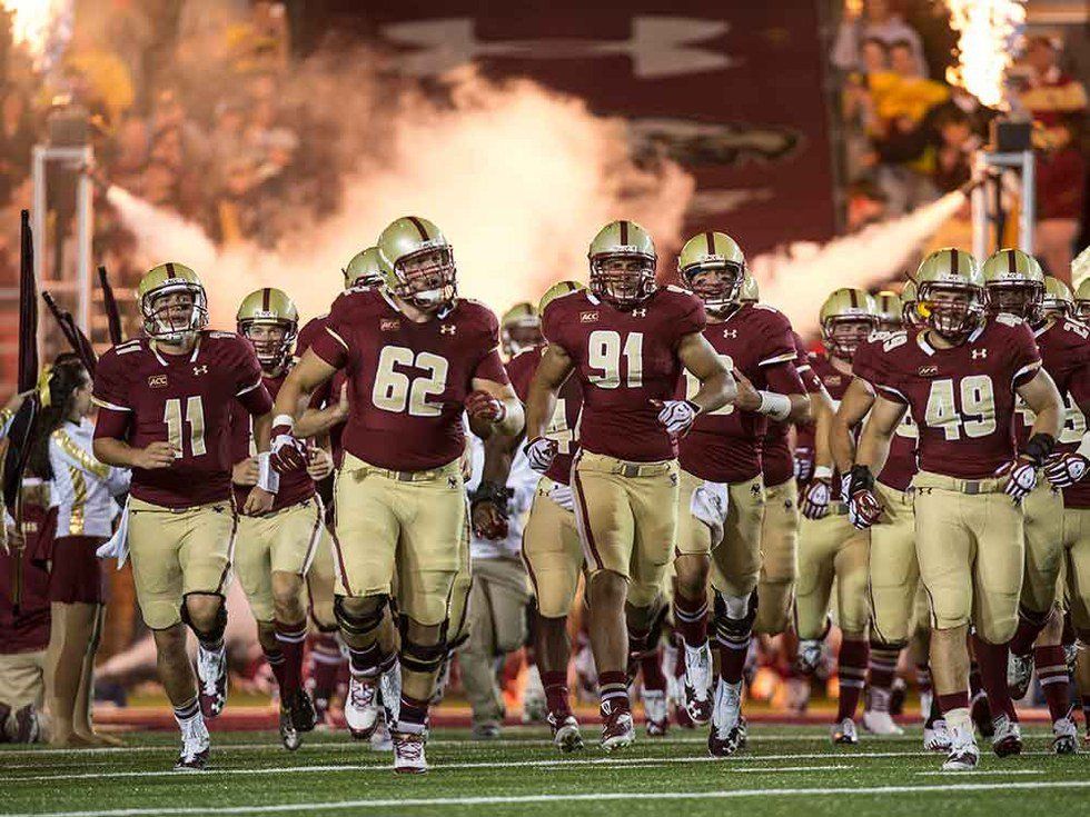 pass outside of Alumni Stadium. His number, 22, has been retired by the Boston College football
