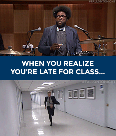 We've all been there. You've set up multiple alarms for that class you have early in the morning. You wake up just to snooze one of them. You swear it's only gonna be for a little more. Five more minutes of precious sleep won't hurt, right? WRONG. Next thing you know, class has started. You get out of bed feeling disoriented, but needing to rush. It doesn't even matter that you're still in your PJs or that you don't brush your teeth. Gotta make it in time for those attendance quizzes! Every point counts!
