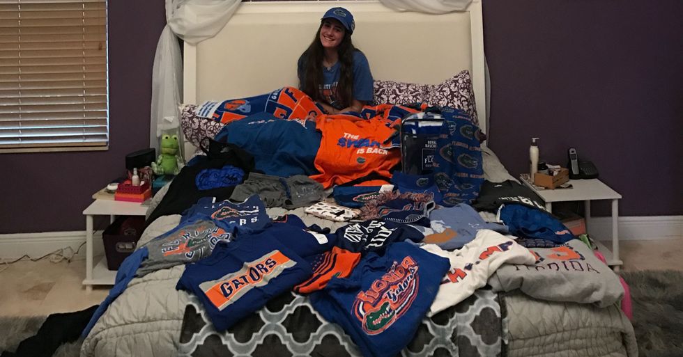 I wore a shirt that said dream, a necklace that said believe, and one sock that was blue and one that was orange. I could not focus in school. In every single class I was just dreaming of UF. School finally was over, and I raced home. I could not eat lunch that day I was so nervous. I could not do anything except sit in my bed for hours.