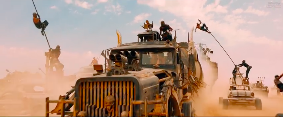 While Fury Road is the fourth installment in the franchise, you don't need to watch the other three. Notoriously sour Rotten Tomatoes gave this one a 96%, for the amazing CGI, fast-paced action and remarkably good character building. The story, like the others, takes place in a post-apocalyptic, water-deprived desert Australia. Imperator Furiosa, a deputy behind Immortan Joe (who's an ugly, white, sex-trafficking, scummy dictator over his Citadel), has stolen five of Joe's "wives" (slaves) in her rig and is trying to escape when her path crosses with the captured Max Rockatansky.