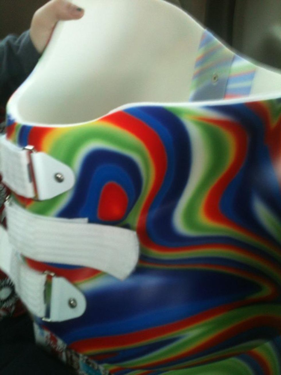 Dr. Accousti explained that my curve definitely was not severe enough for surgery, and our first treatment method would be a corrective brace. I'd wear it 7-8 hours a night while I slept, and this would hopefully stop the curve from progressing. At the brace center of the hospital, I was measured, picked my pattern, and would come back in two weeks for a fitting.