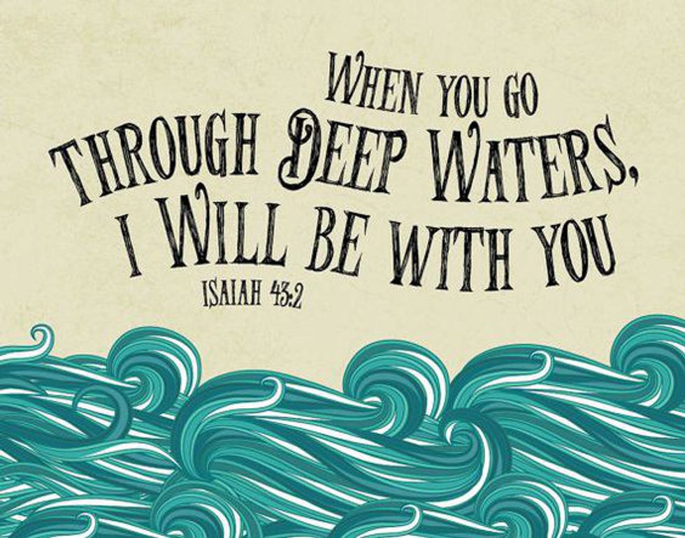 "When you pass through the waters, I will be with you; and when you pass through the rivers, they will not sweep you over you. When you walk through the fire, you will not be burned; the flames will not set you ablaze." -Isaiah 43:2