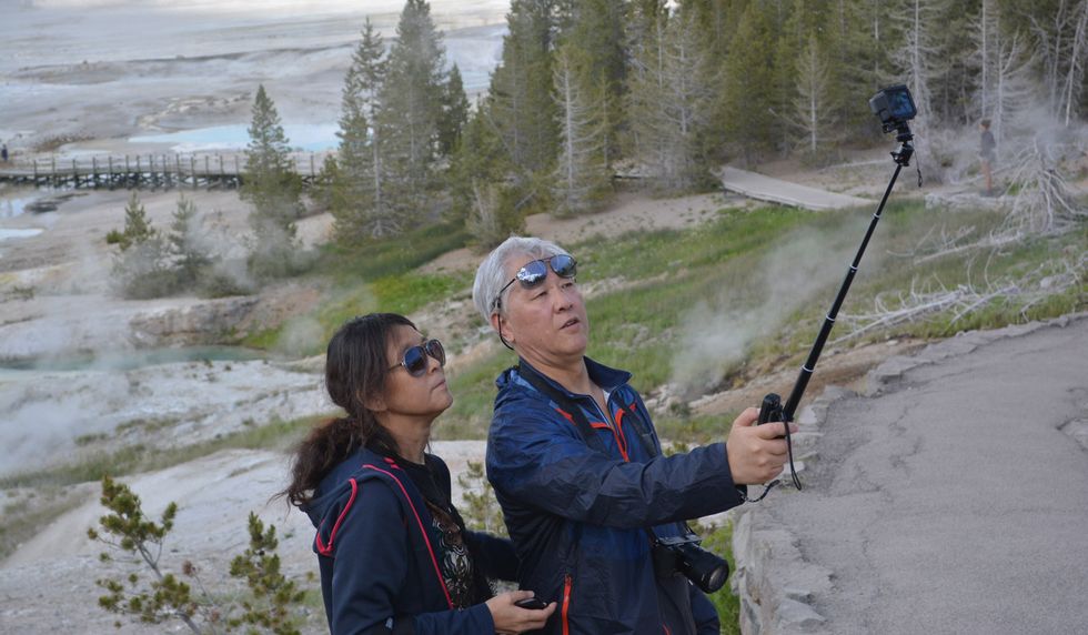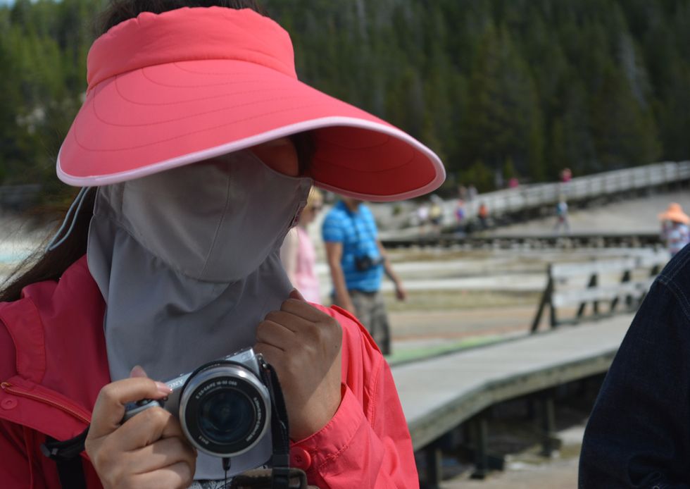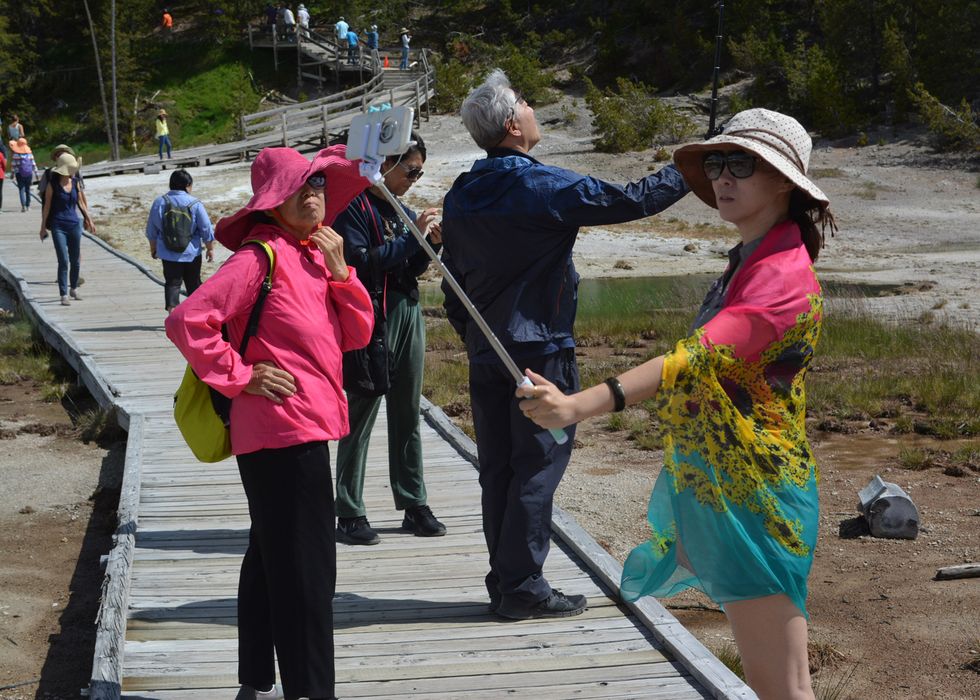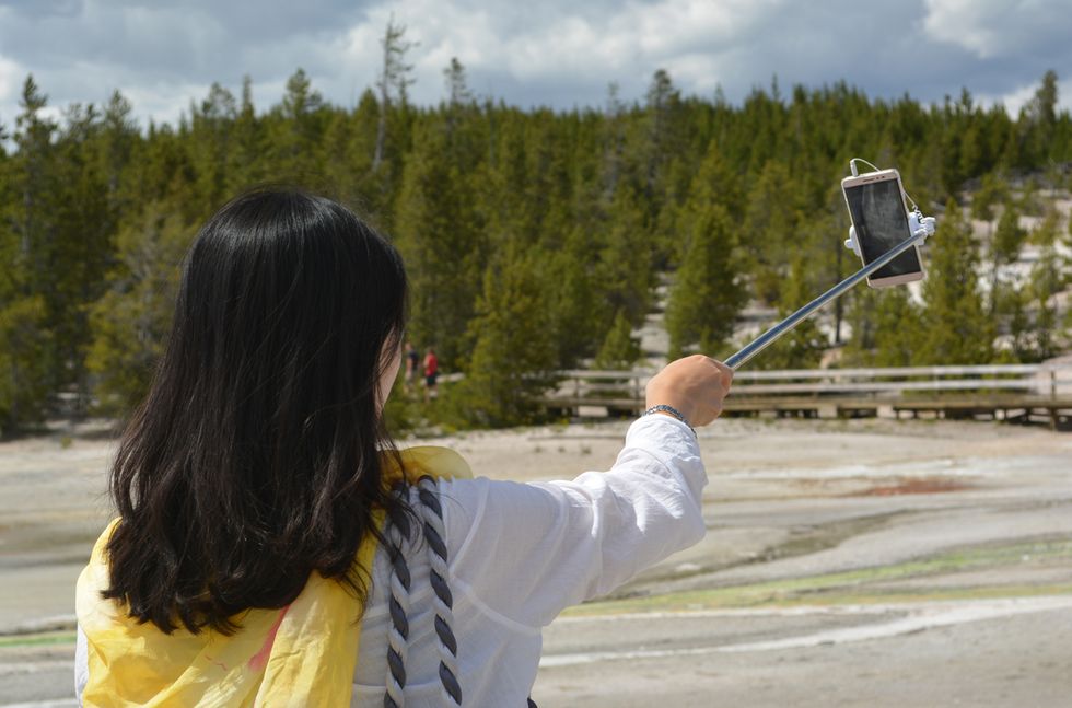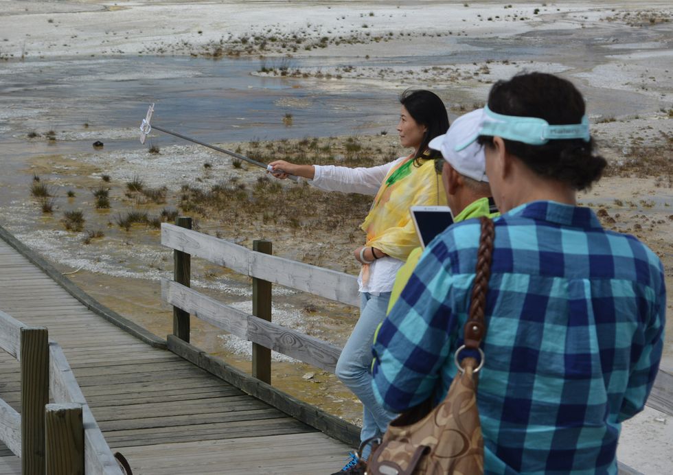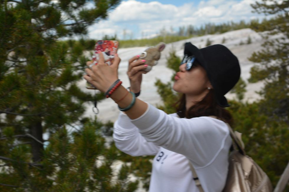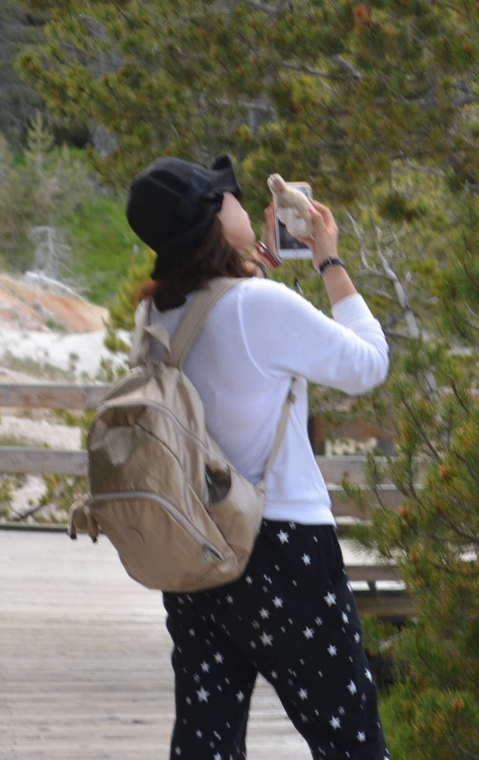 This young lady wants to be at the center of one of the earth’s most breathtaking views, the Norris Geyser Basin in Yellowstone National Park. She’s not enjoying the scenery, but watching herself on her phone.
