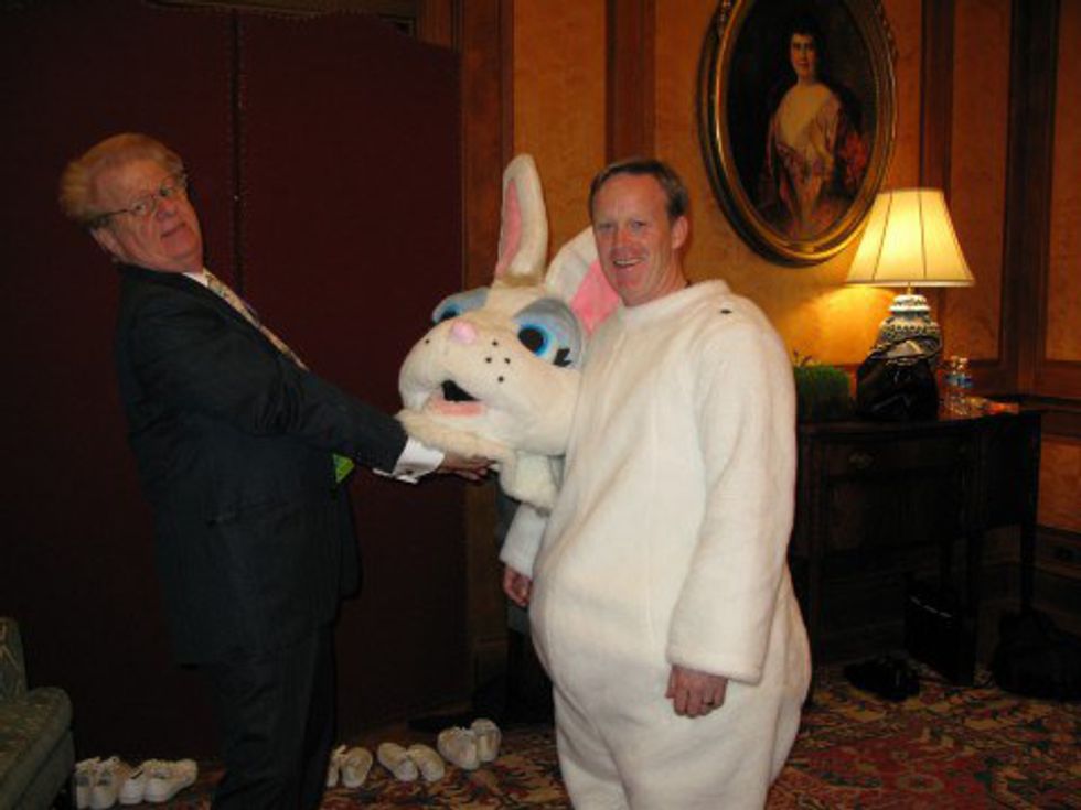 In the weeks leading up to Easter, fittingly enough, old photos of Spicer dressed as the Easter Bunny resurfaced, where he happily -- excuse me, "hoppily"-- stood during the White House Easter Egg Roll. Once again, we're reminded that the internet can be a beautiful thing.Every year, an administrative official goes undercover in the bunny suit, and lucky for Spicer, he had been serving as assistant U.S. Trade Representative under the Bush administration. He currently serves as White House Press Secretary and Director of Communications and is best known for declaring the audience at Trump's inauguration "the largest ever to witness an inauguration, period, both in person and around the globe." While somewhat terrifying, it gives us something to look forward to when and if Melissa McCarthy decides to appear as Spicer on SNL again.