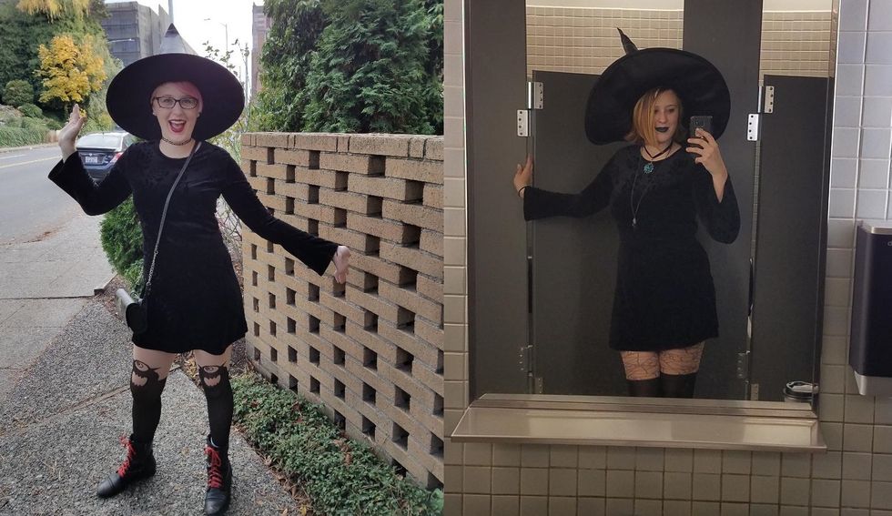 I love showing off my witchy crystal jewelry and spooky cloaks around the city, but my favorite accessory to bring out of the closet is my wide-brimmed witch hat — it goes with every outfit!