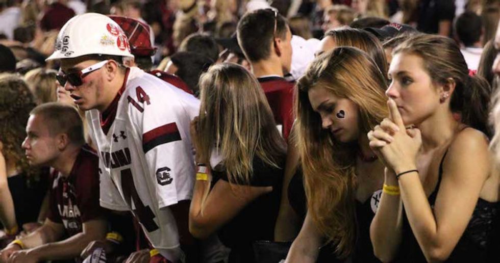 I honestly couldn't think of anything for the University of South Carolina. They had a disappointing football season, and unfortunately, there is no table designated for schools with coaches that throw their visor every chance they get. USC is a beautiful school, but the girls probably aren't eating anything due to loss of appetite after a promising season gone wrong.