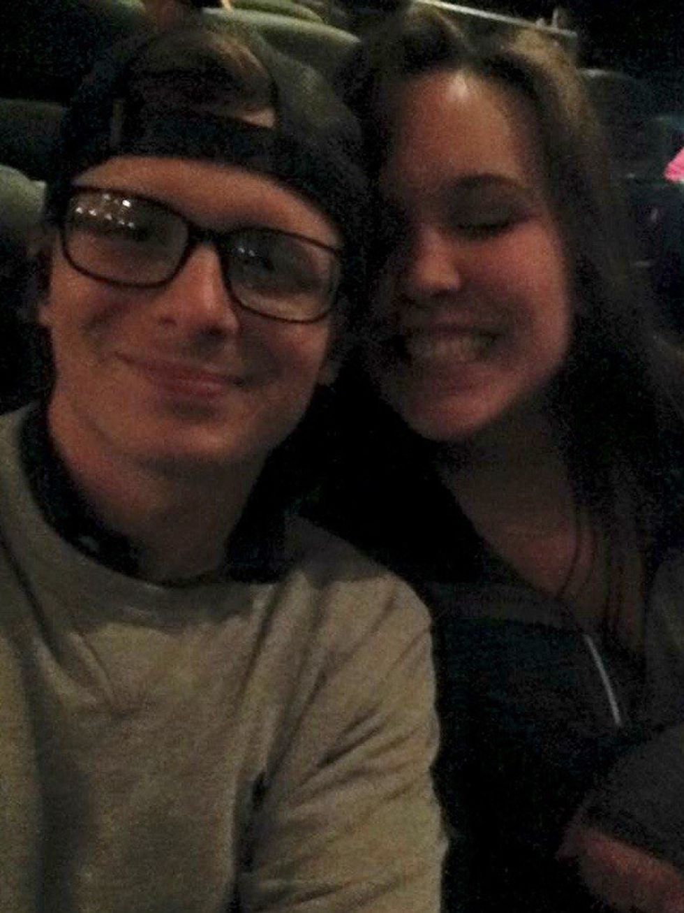 Before the movie started, my sweet Kyle said the extremely NON-magical words. "Let's take a picture." So there he was, being extremely cute, and there I was, being extremely nervous. Observe.