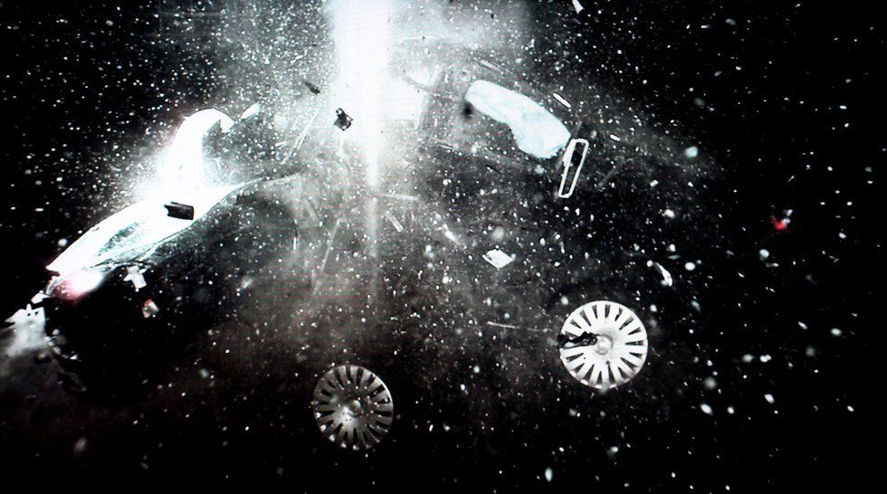 The Masters didn’t speak to one another but seemed distracted as they drove past many signs that Spot knew they normally stopped at. A car honked during one of these passings and the Male Master turned around in his seat to project a single finger from his hand in the direction of the back glass. The Female screamed before the actual impact. While the Male was focused on the car’s rear, another car had appeared from the left, moving fast, and crashed into the side of the Master’s vehicle with such force that Spot swore he had turned completely upside down and was now laying uncomfortably on the inside of the cage’s roof. He whimpered in pain as he tried to stand and make sense of what happened. The car was now still, as were the bodies of his Masters. The Female’s head had broken through the side-glass and was now awkwardly hanging outside the door with her neck hooked at an unnatural angle. The Male was wedged between parts of his own car and parts of the intruding car. Spot could not make out the Male’s left paw and feared it had been torn from his body during impact. The door to Spot’s cage had unhinged during the chaos and so he limped out into the wreckage and gave a single lick to each of his Masters’ cheeks before hopping out a broken window and onto the street. He paused by the smoking vehicles, expecting the squeal of sirens but none came. Nothing moved in these silent moments before sunrise and it was not until the first hint of light touched the sky that Spot began a new trek in the direction towardDawn.