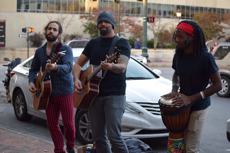 With only a little bit of time left to spare before dinner we wandered around a bit more. One of the beauty's of Asheville wasn't the mountains, but the amount of street performers. There were two young brothers singing and playing guitar, two older men with drum sets who were singing classics, many solo guitarists, and specifically three guys singing popular songs, who were phenomenal. The amount of talent throughout the city was remarkable. The band, Run With It, was there from Kansas City and were preforming and just trying to spread their name. Every time we passed by there was quite the crowd from toddlers to older couples. The talent in the city was endless.