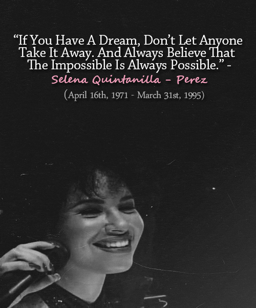 She is more than a singer or a fashion designer or a young Mexican-American woman who was taken from this world too soon. She was such a beautiful person inside and out, always willing to help her community and inspire her fans. Heaven gained an angel when the world lost Selena. Rest easy, you're still loved.