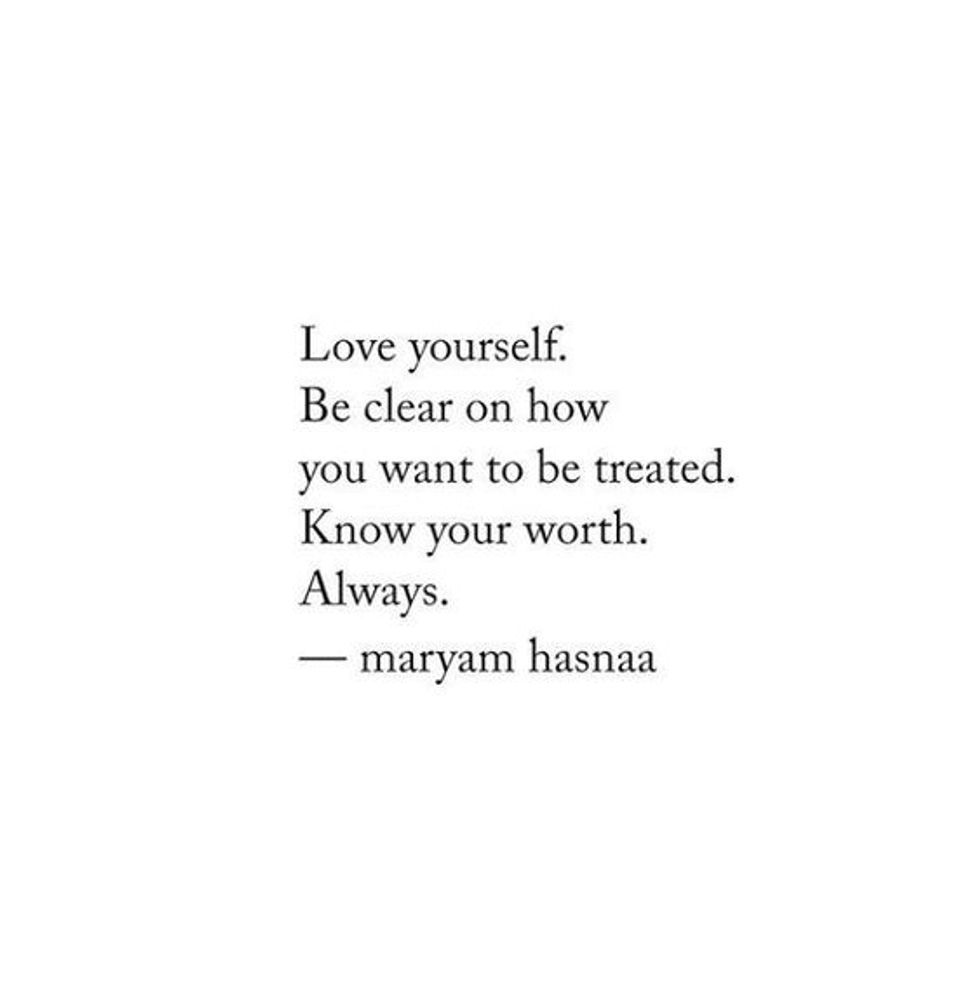 "Love yourself. Be clear on how you want to be treated. Know your worth. Always."