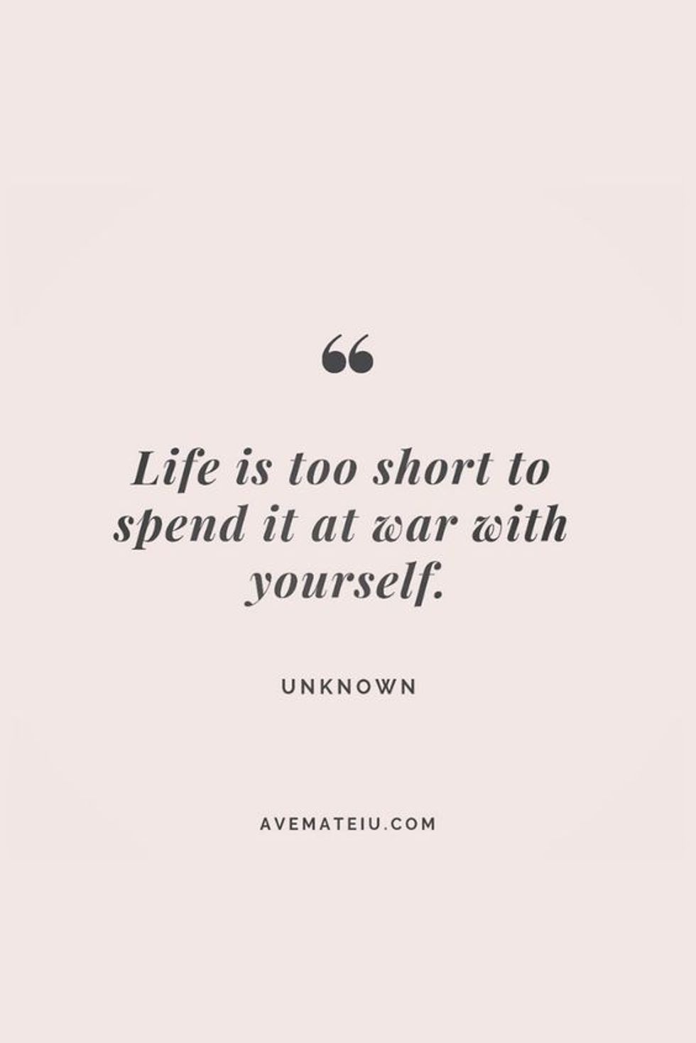 If we're spending all our time and energy putting ourselves down, we're going to miss out on life's wonderful moments. Put down the weapons: it's time to stop fighting against yourself. Be at one with yourself, and you will enjoy life so much more.