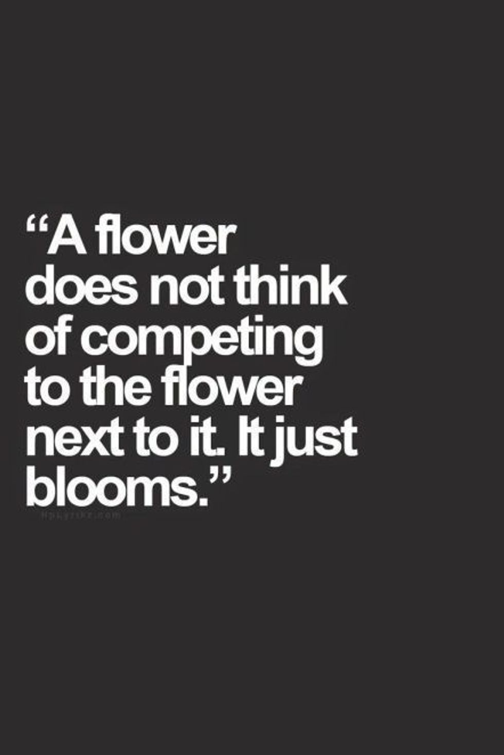 Flowers are just flowers. They grow into the most breathtaking sights. They don't worry about if they're growing too slow, or if they're not vibrant enough. They just do what they do. You need to do the same. A life spent comparing yourself to others isn't a happy one.