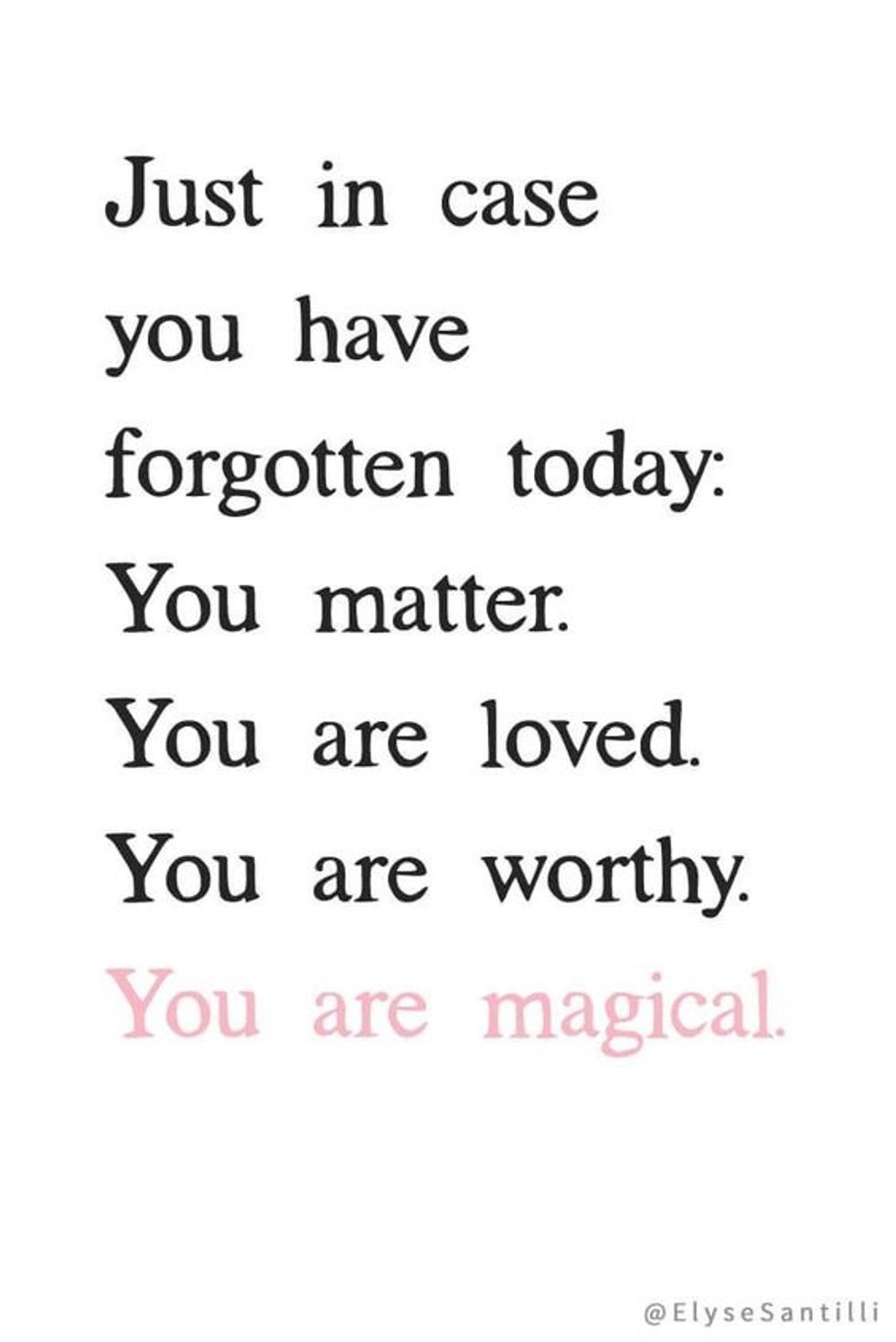 "Just in case you have forgotten today: You matter. You are loved. You are worthy. You are magical.